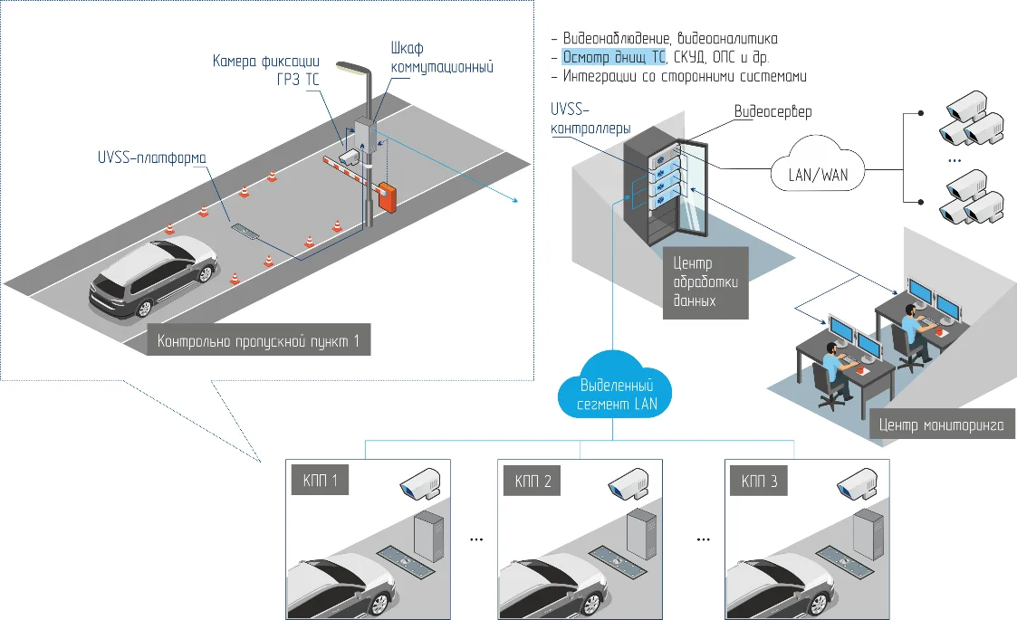 - Повышенный уровень безопасности сотрудников, исключающий необходимость физического осмотра транспорта снизу.